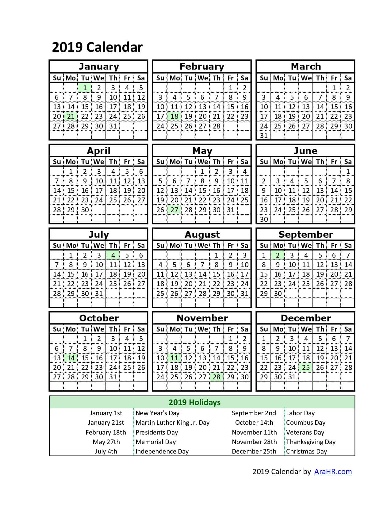 Discover free printable 2019 calendar templates (PDF, Excel, Image) instantly.